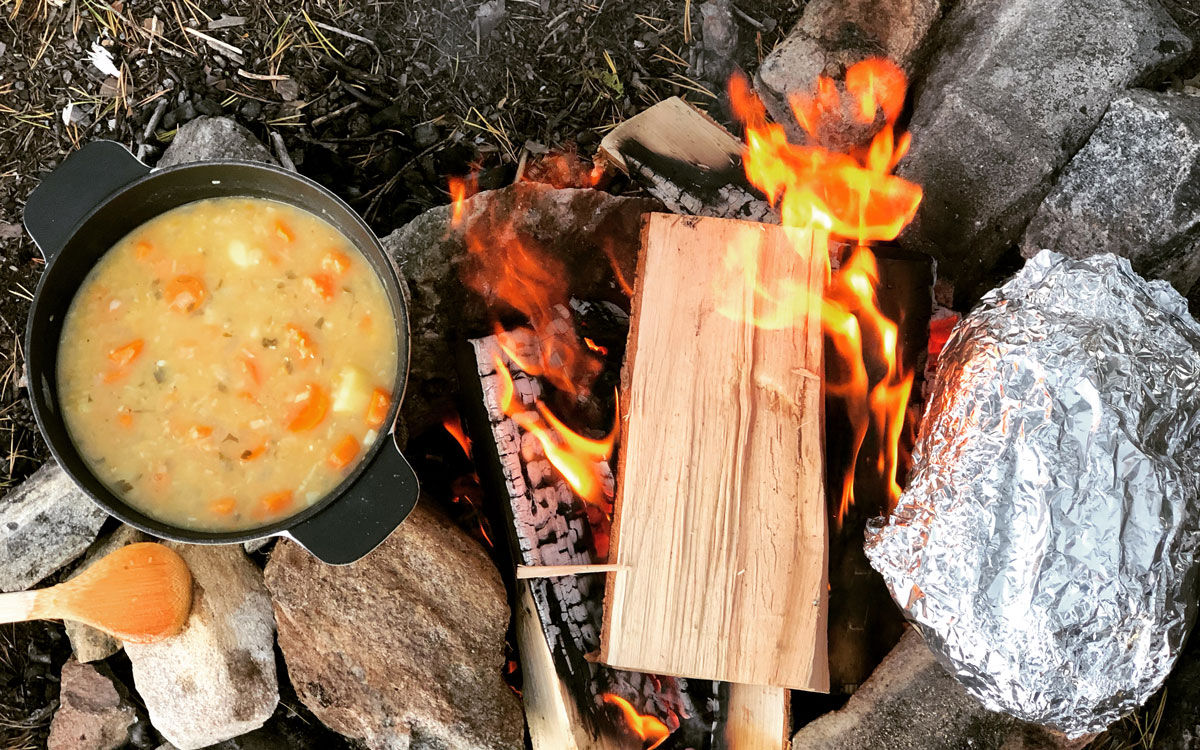 Suppe og brytebrød på bålet