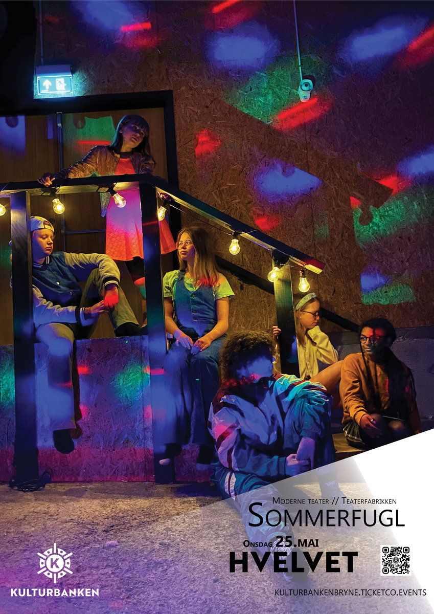 Teaterfabrikkens gruppe "Moderne teater 12-16år" presenterer en relevant og samtidsviktig forestilling med sin "SOMMERFUGL". Forestillingen vises i Hvelvet 25.mai kl 1830.