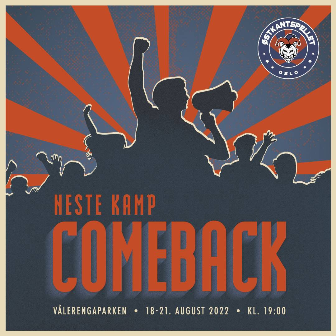 Østkantspellet 2022 presenterer: NESTE KAMP - COMEBACK! Etter to år med pandemi er Østkantspellet endelig tilbake i Vålerengaparken! Over 100 aktører serverer deg kraftpakka "Neste Kamp -...
