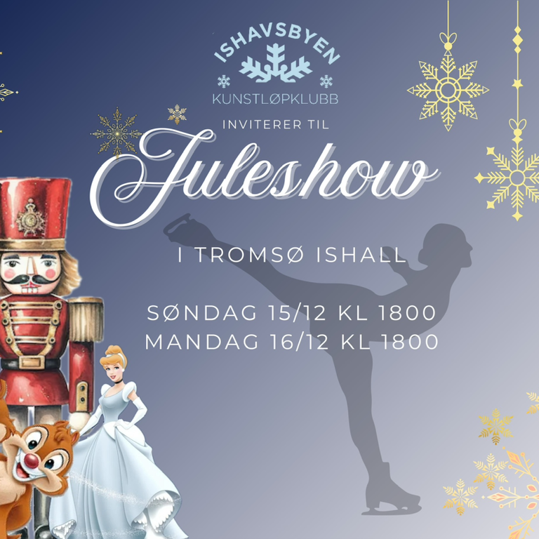 Velkommen til vårt magiske juleshow på isen! Gjør deg klar for en uforglemmelig opplevelse når alle våre kunstløpere tar isen! Fra de minste stjernene i skøyteskolen til våre topputøvere på...