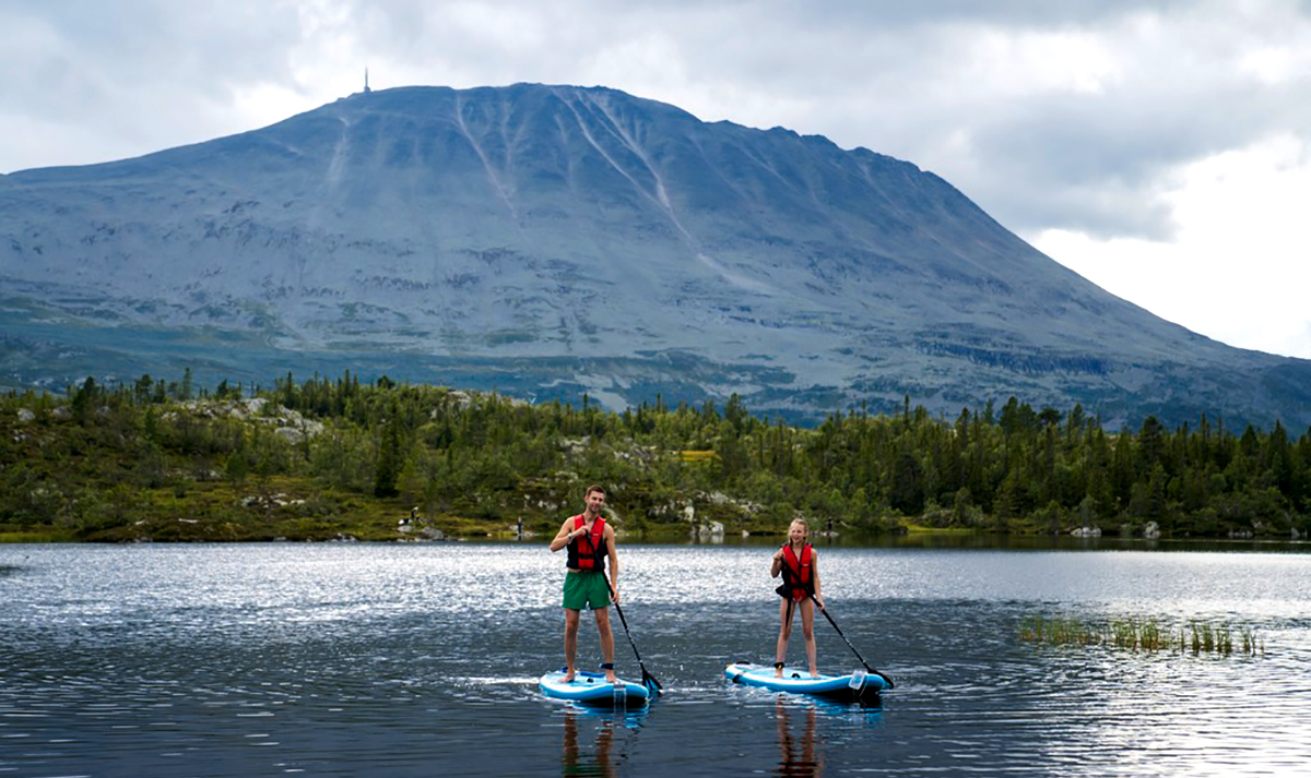SUP-padling på Gaustablikk med Gaustatoppen i bakgrunnen
