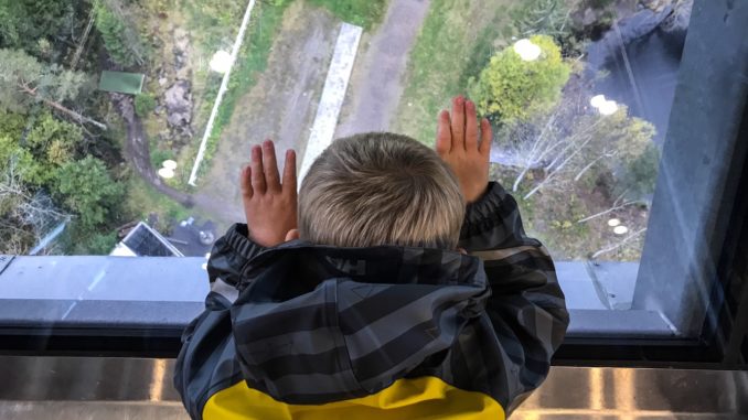 Vi tok med oss en fireåring, en toåring, og en baby i barnevogn til skimuseet i Holmenkollen. Aktive små barn inne på et museum er alltid like spennende: Enten så funker det, eller så funker det ikke, og da må man bare se å komme seg bort derfra så fort som mulig 🙂