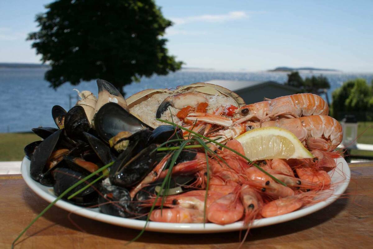 Skalldyrjulebord og ost til dessert.