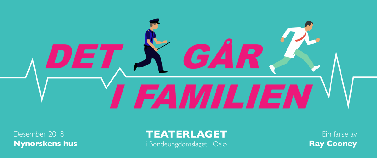 Det blir høg puls i Teatersalen i Nynorksens hus frå 8. desember. Få med deg denne herlege, artige og underhaldande komedien! Desember 2018 set Teaterlaget opp farsen Det går i familien av Ray...