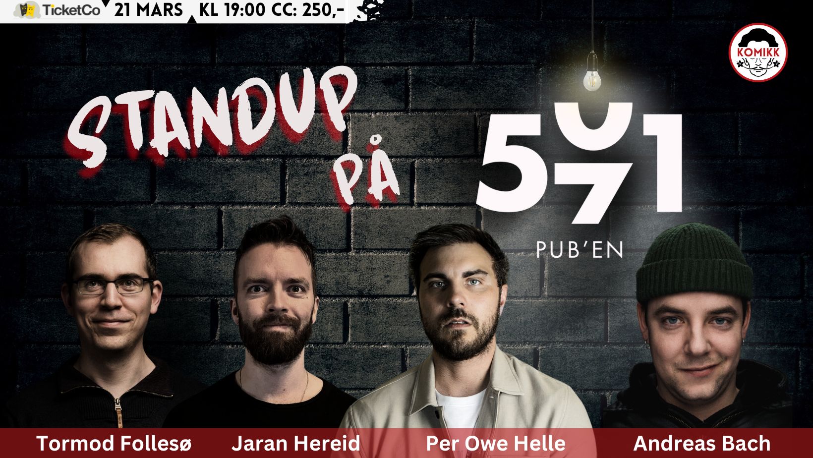 Ta med deg venner og kjente på en kveld fylt med humor fra fjerne og lokale humor talenter. Dette blir en typisk standup klubbkveld med en konferansier som geleider oss gjennom showet og...