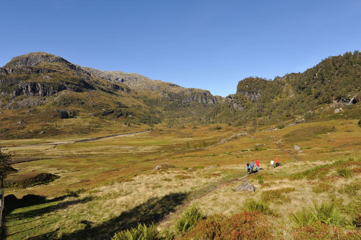 Start fra Buer i Åbødalen og følg T-merket sti mot Via og Sandvasshytta (DNT). Etter å ha passert stigningen ved Takhidler gå til skilt som viser løype over Nordheia. Følg merka løype (gul). Noe stigning i starten som flater ut på toppen og går mot Moringdalen. Flott utsikt. Når du kommer ned i Moringdalen, følg merkene til høyre og fortsett ned til Buer. Lengde: Ca. 5 km. Høydemeter: 300 m.