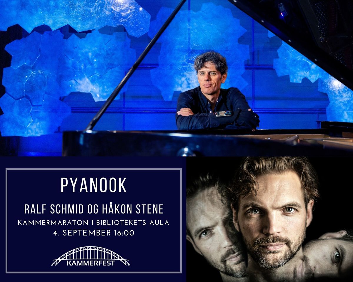 Pianisten, arrangøren og komponisten Ralf Schmid har under artistnavnet PYANOOK skapt et prosjekt som er virkelig spennende og nyskapende. Hvis han spiller alene, bruker han to akustiske pianoer, men under vår Kammerfest har han invitert med seg den opprinnelige Fredrikstad-gutten, Håkon Stene. Med Aulaens flygel, et sett slagverkinstrumenter, og live elektronikk, ...