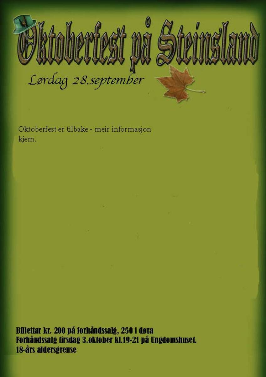 Det er endeleg tid for oktoberfest igjen! Det vert lekar som før - så kom gjerne tidlig :-D 20 års aldersgrense.