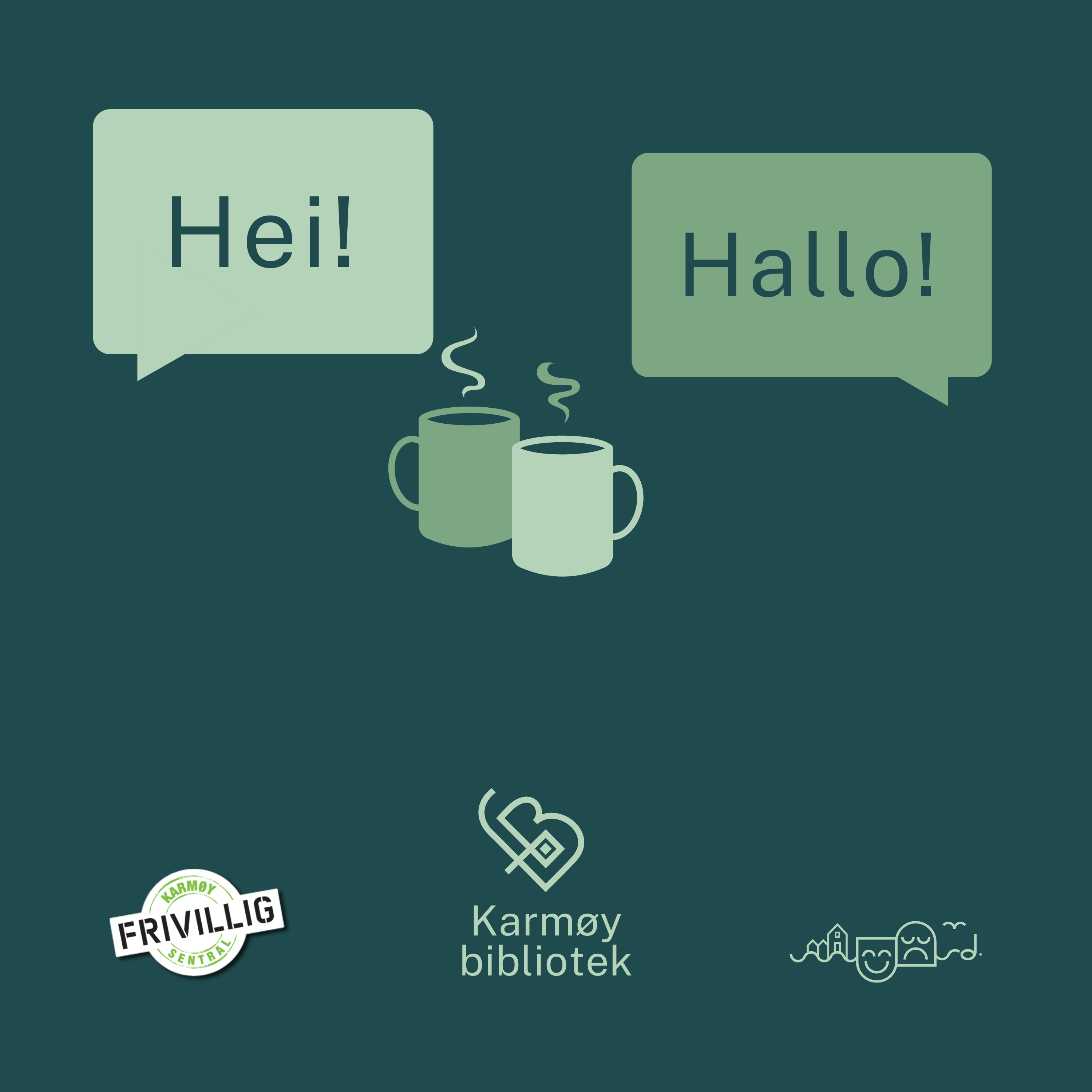 Språkkafeen er et samarbeid mellom Nord- og Sør-Karmøy Frivilligsentral IOGT og Karmøy folkebibliotek.