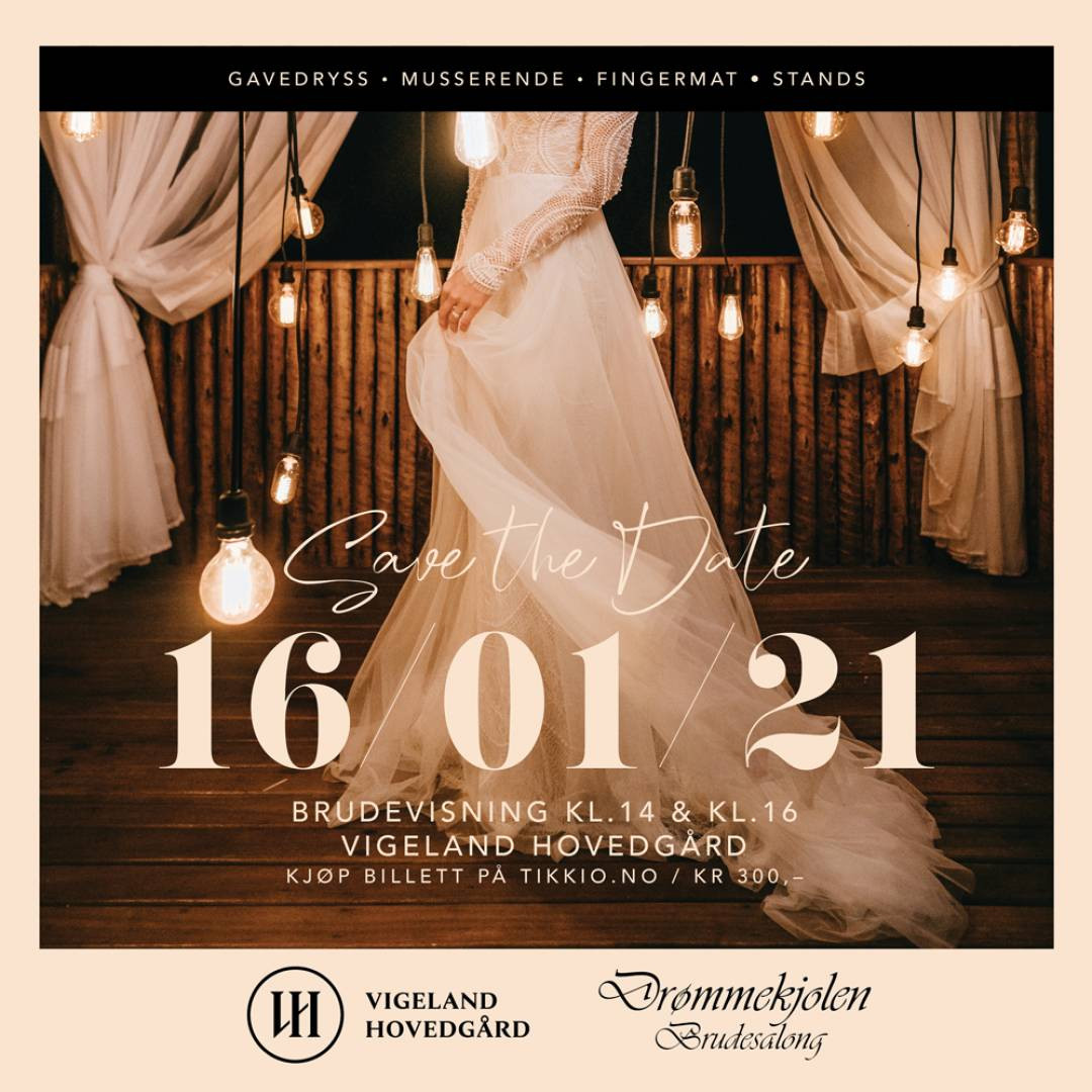 Musserende / fingermat / gavedryss / stand for inspirasjon / brudeoppvisning innen bryllupsmote og selskapsantrekk. Om du nettopp har blitt forlovet og er i starten av planleggingsfasen, er dette brudevisningen for deg. Arrangementet finner sted i vakre omgivelser i et av sørlandets fineste selskapslokale med otras elvebredder som nærmeste nabo, vigeland hovedgård, løa, fra klokken 14. 00-17. Første timen blir det fine stander å besøke, her får du tips og råd fra håndplukket partnere innen fa...