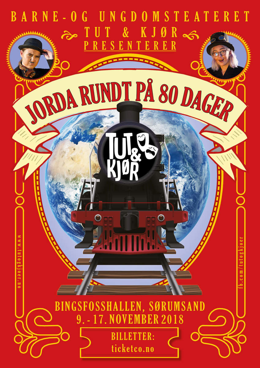 BLI MED JORDA RUNDT! Også denne høsten forvandler Barne- og ungdomsteateret Tut&Kjør Bingsfosshallen til Sørumsand sitt lokalteater og i år viser vi en eviggrønn og gøyal klassiker: JORDA RUNDT...