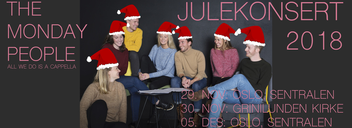 Endelig er vi tilbake! Årets julekonsert med The Monday People er nå ute for salg. Vi fortsetter tradisjonen med acapellasang krydret med snasne dansetrinn. En opplevelse du ikke vil gå glipp av!