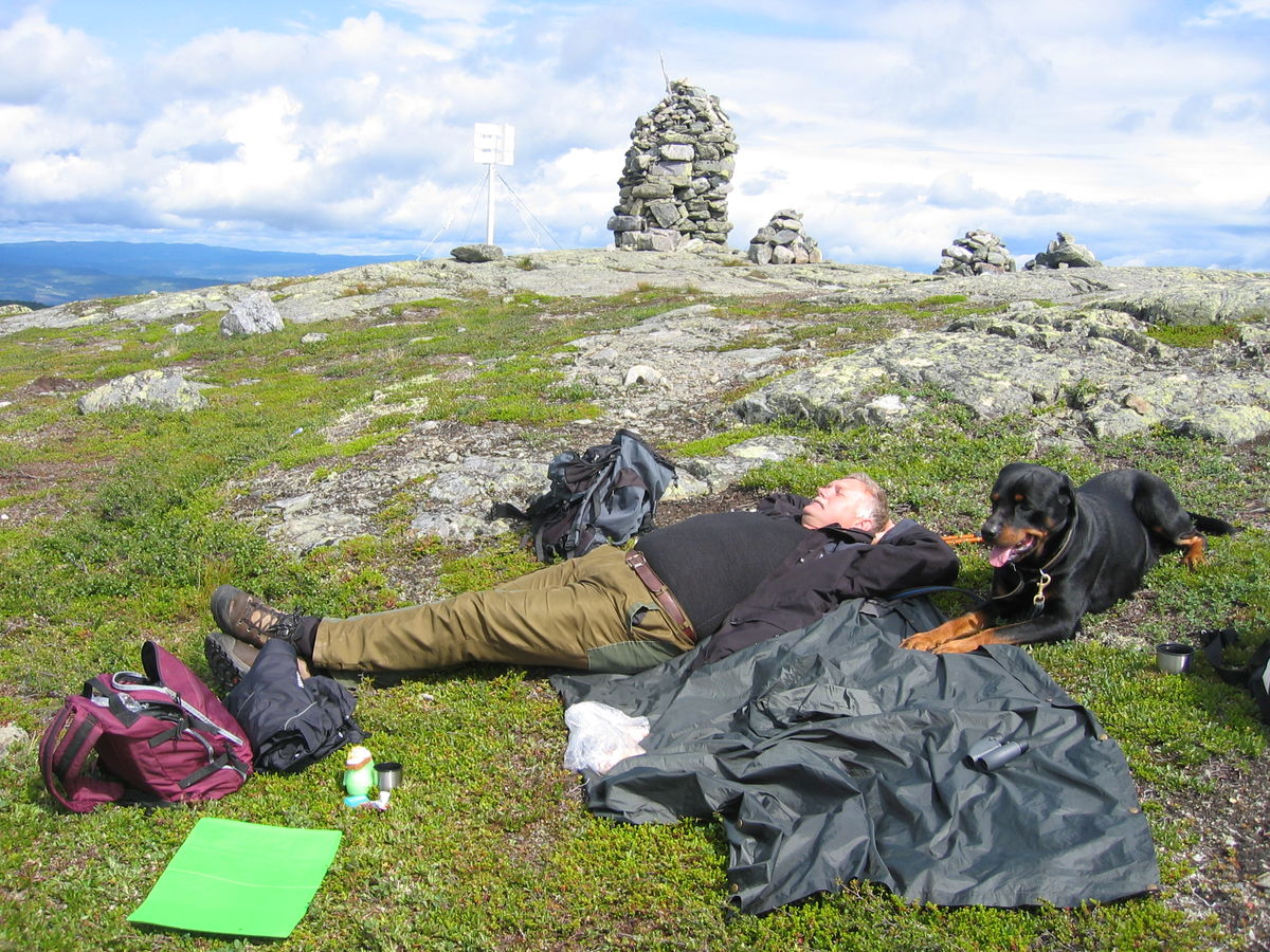 Fra parkeringen S-over på grusveg gjennom hytteområde over kolle til Midtre Båtstjern. Her går traktorvegen over i tydelig sti. Følg stien videre i bjørkeskog og den siste km i snaufjellterreng før...