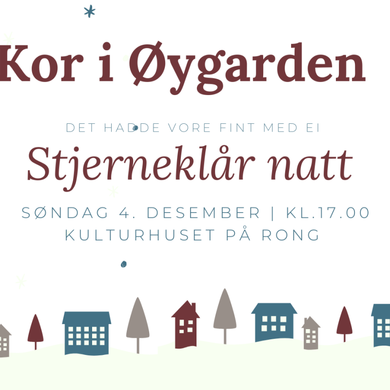 Kor i Øygarden inviterer til julekonsert i Rong Kulturhus. Unn deg eit avbrekk i førjula sitt mas og kjas og senk skuldrane med oss denne søndag ettermiddagen, No er det lenge sidan me sist hadde...